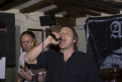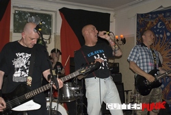 The penultimate band were Left for Dead, who again we have seen a few times and just seem to get better and better. They were excellent this time, even though the lead singer admitted to us afterwards that he had been knocking back very strong Cider and was rather out of it, although he was still able to sell me and Steve a CD each!Last up were the Varukers. There was a good crowd by now (not packed though) and Rat played to the audience like a true showman. They went through their set with tracks like 'All Systems Fail', 'March of the SAS', 'Die for Your Government', 'I Don't Wanna be a Victim', 'Massacred Millions' and 'Protest & Survive'. They were brilliant and really sealed off a excellent evening at the Bridgehouse. Our next venture out will be to see the Gonads in Canterbury .. that should be a night not to be missed!