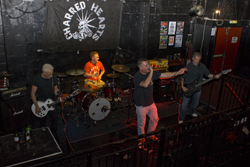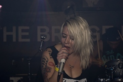 Unfortunately the first band, The Sweinz, had not made it for whatever reasons, so first up on stage were 16 Guns. We had not come across them before and were looking forward seeing them, we were not disappointed either, they were really good and pounded out their numbers to a very willing audience! I think the agreement was that we wouldn't mind seeing them again after this performance.Next up were the Charred Hearts (www.charredhearts.co.uk ) and they were again on form! The stage is quite small so Fuller seemed to spend most of the time off it and in with the audience. They had quite a long set with tracks "Louisiana Calling", "Fucked", "Nowhere Town", "Crash", "Persecute Me", "You're Bringing Me Down", and "Always Beside Me". They were excellent, the crowd loved them and I got to take a number of good shots during their set. The Charred Hearts always seem to go down well and are a very popular band on the circuit.