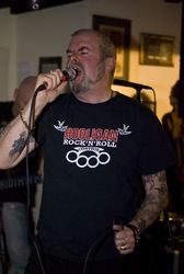 Next up were a band we hadn't seen before, Booze & Glory, well ... how did this bunch drop through our net? They were brilliant! Each track was pounded out and the audience lapped it up, especially 'Swinging F**king Hammers' which lit up the whole venue and set the pace for the next band.The third band on were The Warriors, worryingly they had to follow both the Halfwits and Booze & Glory, who had set the bar so high! Well they hit back in style, this was probably one of the best Warriors performances I've seen, they were excellent. It helped that the crowd, quite rightly, seemed to be 100% behind them and many had turned up really to see them. The place was very soon full of Punks and Skins crashing into each other and the band. The Warriors pounded out track after track as the crowd lapped up each and got more and more frenzied. There were tracks like 'Horrorshow', 'Gary Bushell', 'The Last Resort', 'Eight Pound a Week' and 'John Fila Drug Dealer'. They finished on 'England' to rousing applause. After this performance I think Russ's comment about the Halfwits may be very premature, these guys are gonna be stealing the show for a good few years to come.