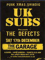 Next up it's the last gig of the year and we're off to the Relentless Garage to see the UK Subs, Defects and Charred Hearts and get ourselves a bit of Christmas cheer.