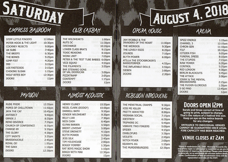 Rebellion 2018, Saturday 4th August